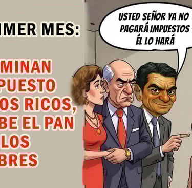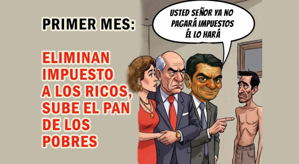RESUMEN DEL PRIMER MES DE GESTIÓN: ELIMINAN IMPUESTO A LOS RICOS, SUBE EL PAN DE LOS POBRES